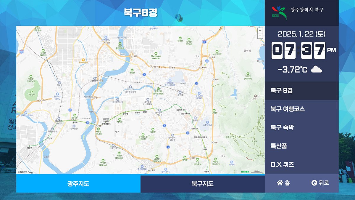 광주광역시 북구에 솔디자인플랜이 광주광역시 북구8경 키오스크 솔루션을 개발하여 납품하였습니다.
